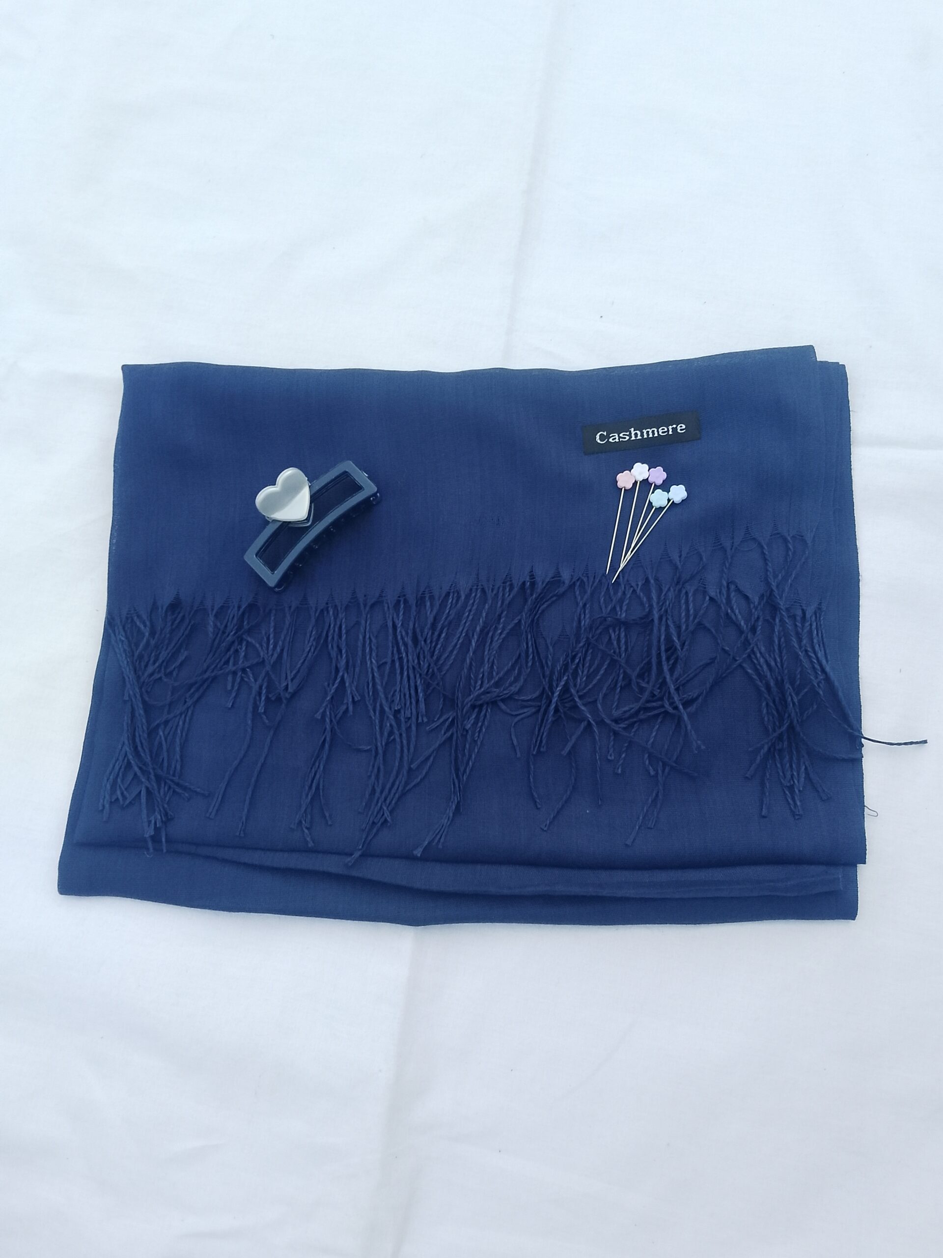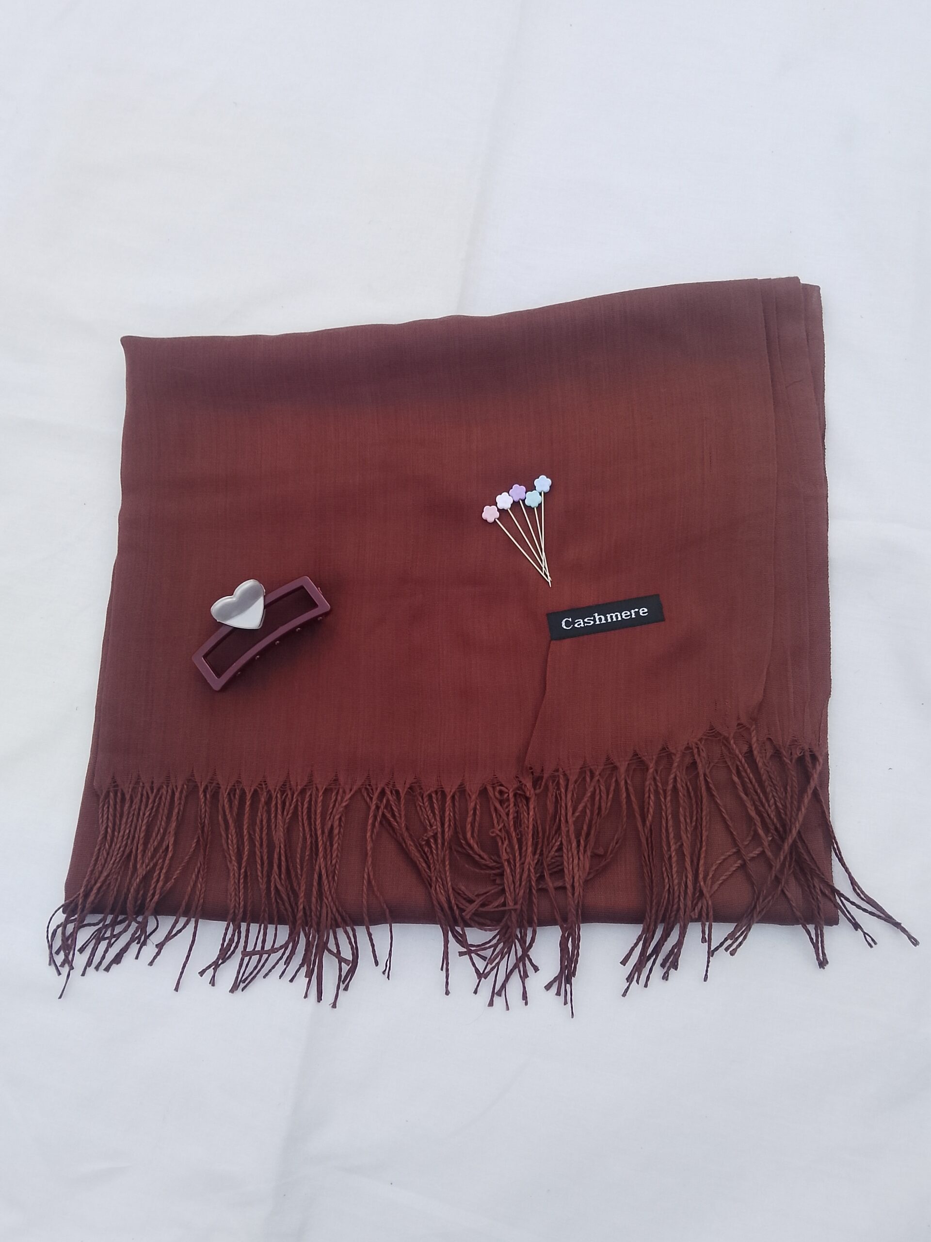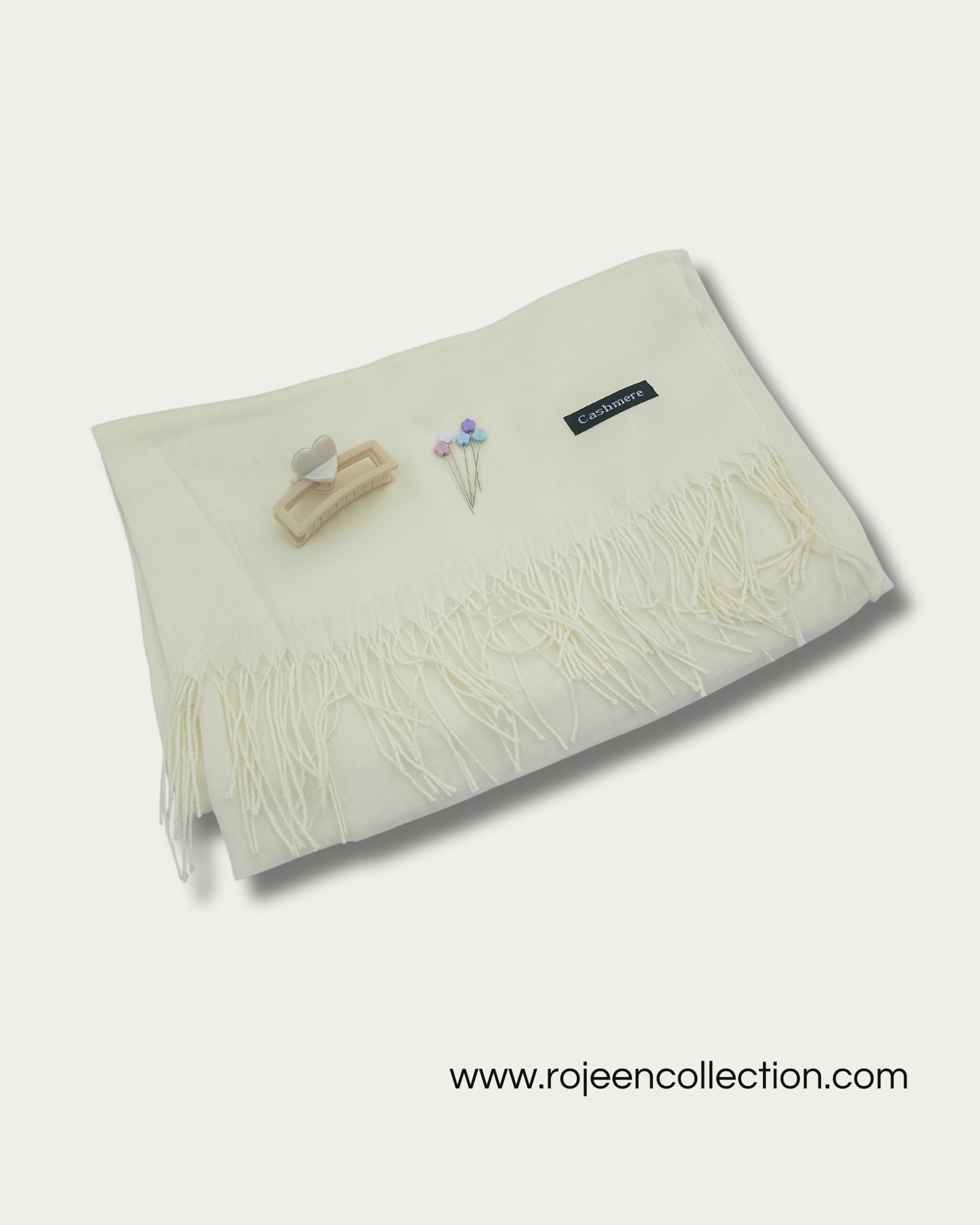 The cashmere lawn hijab scarf offers a soft and breathable feel, making it suitable for long wear in Pakistan’s weather. The heart hair catcher helps keep hair neatly managed, while the roset flower pins provide a secure and elegant way to style your hijab.