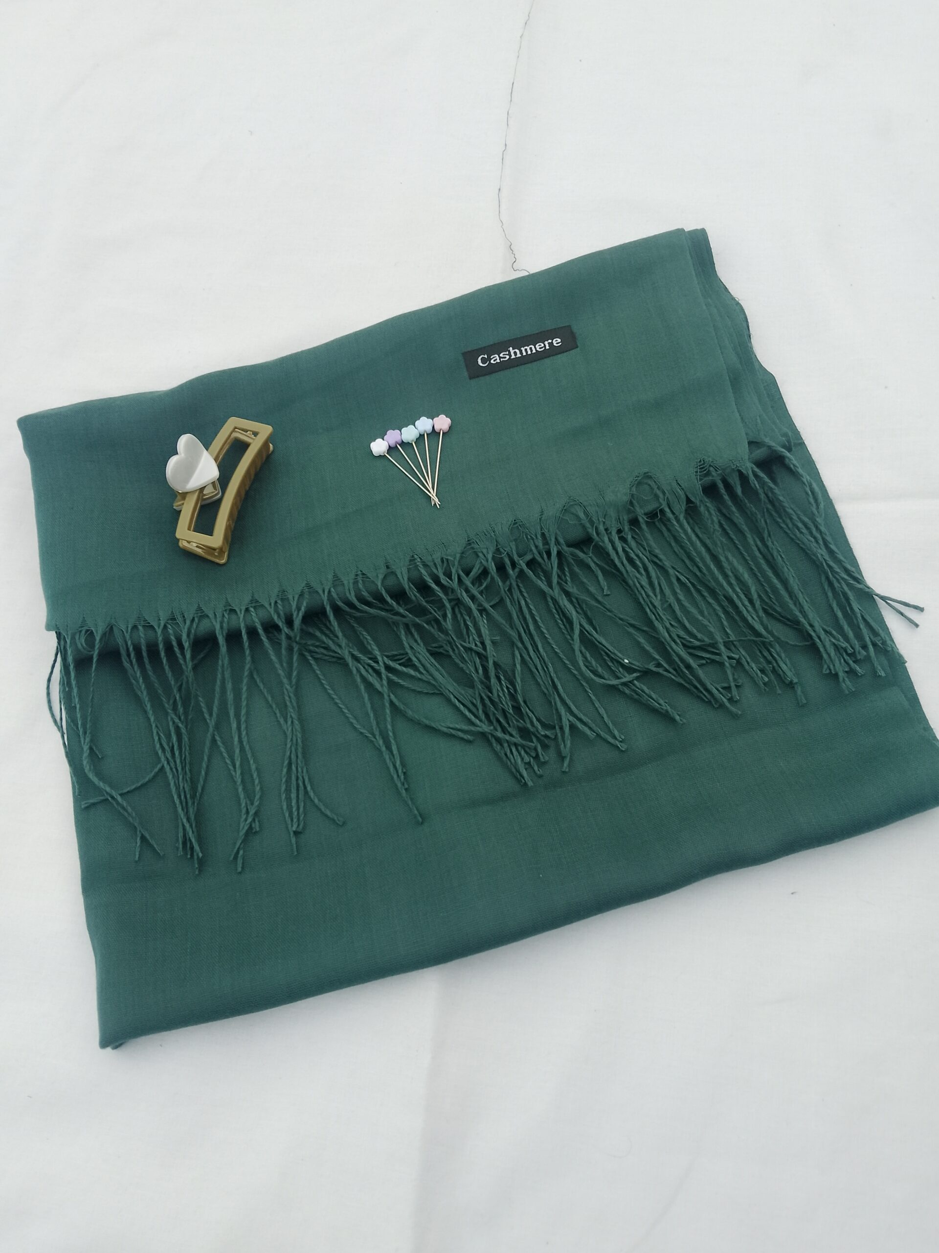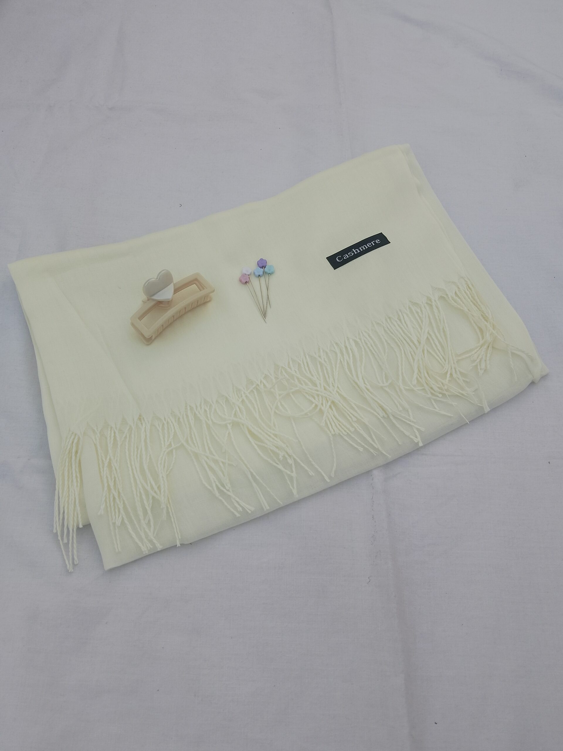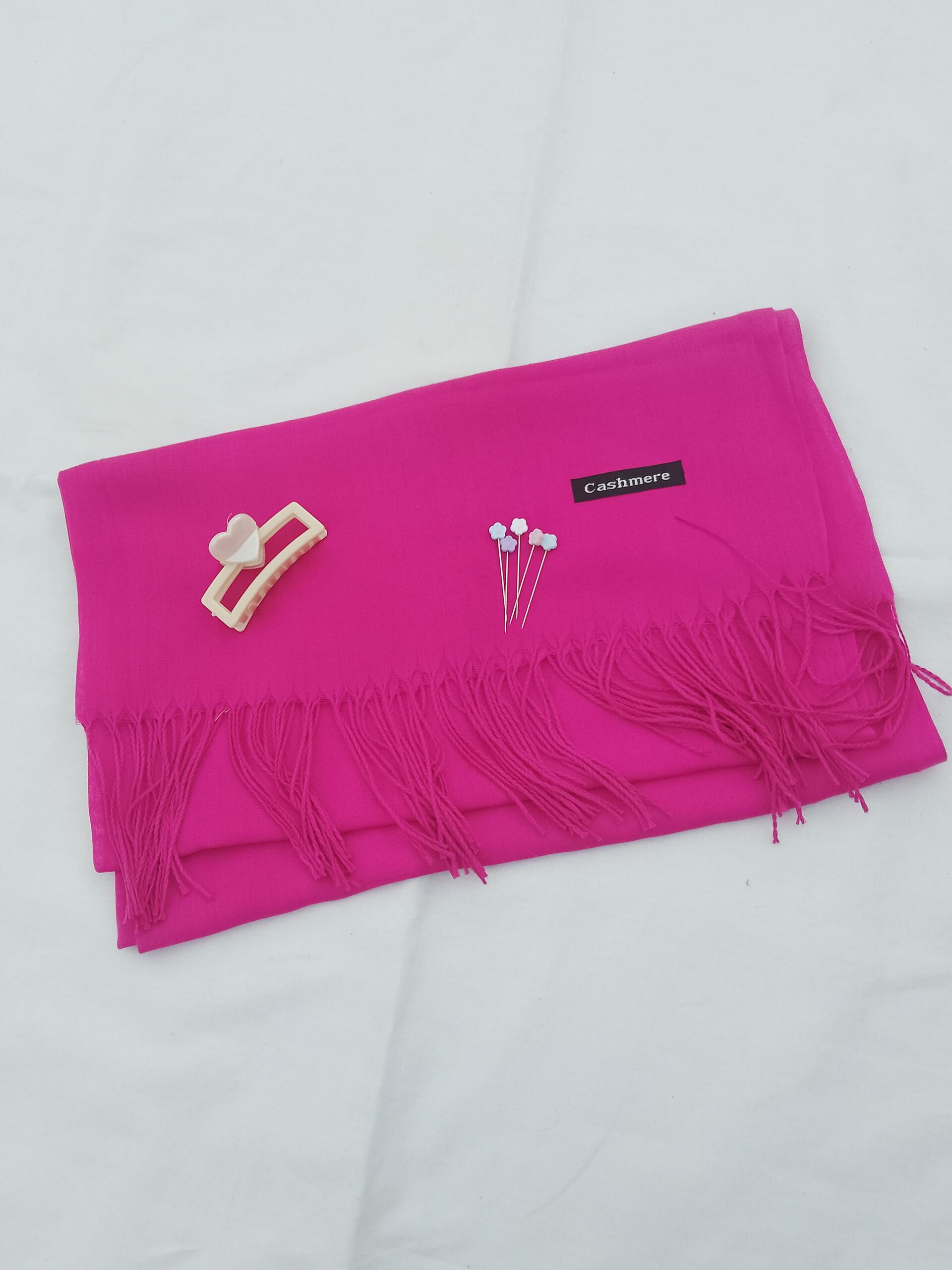 The cashmere lawn hijab scarf offers a soft and breathable feel, making it suitable for long wear in Pakistan’s weather. The heart hair catcher helps keep hair neatly managed, while the roset flower pins provide a secure and elegant way to style your hijab.
